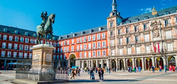 La plaza Mayor está situada en el centro de Madrid, en el barrio de Sol, junto a la calle Mayor y a 300 metros de la Puerta del Sol.
